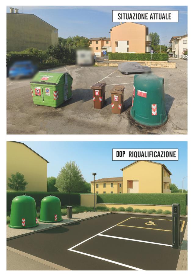 - Realizzazione di un’area rialzata per posizionare in sicurezza la campana del vetro e un cestino;